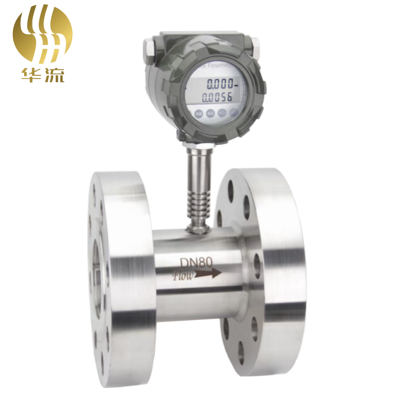 渦輪流量計采用渦輪進行測量,它先將流速轉(zhuǎn)換為渦輪的轉(zhuǎn)速,再將轉(zhuǎn)速轉(zhuǎn)換成與流量成正比的電信號。這種流量計用于檢測瞬時流量和總的積算流量,其輸出信號為頻率,易于數(shù)字化。感應(yīng)線圈和磁鐵一起固定在殼體上。當(dāng)鐵磁性渦輪葉片經(jīng)過磁鐵時,磁路的磁阻發(fā)生變化,從而產(chǎn)生感應(yīng)信號。信號經(jīng)放大器放大和整形,送到計數(shù)器或頻率計,顯示總的積算流量。同時將脈沖頻率經(jīng)過頻率-電壓轉(zhuǎn)換以指示瞬時流量。葉輪的轉(zhuǎn)速正比于流量,葉輪的轉(zhuǎn)數(shù)正比于流過的總量。它的輸出是頻率調(diào)制式信號,不僅提高了檢測電路的抗干擾性,而且簡化了流量檢測系統(tǒng)。它的量程比可達10:1,精度在±0.5%以內(nèi)。慣性小而且尺寸小的渦輪流量計的時間常數(shù)可達0.01秒。廣泛應(yīng)用于石油、有機液體、無機液、液化氣、天然氣和低溫流體等。氣體渦輪流量計的應(yīng)用范圍包括發(fā)電及熱電聯(lián)產(chǎn)、供熱行業(yè);航空、航天、造船、核能及兵器行業(yè);機械、冶金、煤礦及汽車制造行業(yè);石油、化工行業(yè);醫(yī)藥、食品及煙灑制造行業(yè);森工、農(nóng)墾及輕工行業(yè)等。