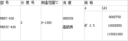 3、吹氣熱電偶型號(hào)及規(guī)格