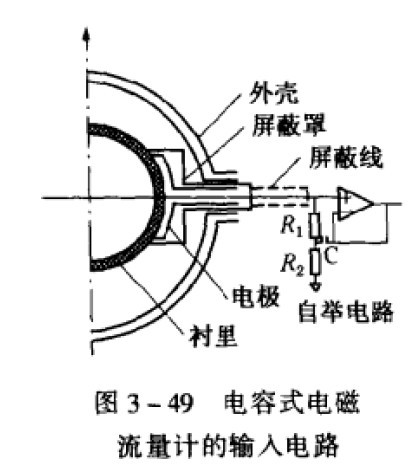 下一節(jié)將講到,勵(lì)磁線圈與電極間存在分布電容和絕緣電阻勵(lì)磁電壓通過(guò)勵(lì)磁線圈與電極間的分布電容、絕緣電阻與信號(hào)內(nèi)阻構(gòu)成分壓回路,在電極上會(huì)形成相當(dāng)大的共模干擾電壓。因此,要求電容變送型轉(zhuǎn)換器的共模抑制比在CMRR≥120dB以上。采用高性能運(yùn)算放大器和電源浮動(dòng)等措施來(lái)提高轉(zhuǎn)換器的共摸抑制比,是解決電容電磁流量計(jì)的共模干擾電壓的有效方法。把前置放大器放在傳感器內(nèi),如采用貼片元件制成薄印刷電路板緊貼電極,并采用圖3 - 49的自舉阻抗轉(zhuǎn)換和靜電屏蔽措施,能有效地抑制傳感器大的共模干擾輸出。