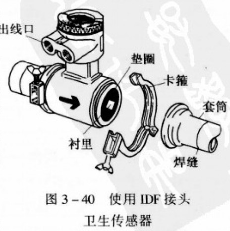 在食品、醫(yī)藥和釀造行業(yè)的應(yīng)用領(lǐng)域,從衛(wèi)生的角度出發(fā),其工藝過程中需要定期地使用高溫蒸氣塒工藝管線和儀表進行清洗消毒,并H包括流量計傳感器在內(nèi)的管線接頭部位不能有殘留的介質(zhì),以防細菌繁殖。岡此,國際酪農(nóng)聯(lián)盟IDF( LntemationDajry Federalion)規(guī)定了食品工業(yè)管道標準的快速接頭形式。生型流量計傳感器就使用符合規(guī)定的LDF接頭或卡箍型結(jié)構(gòu)的連接接頭。同時,為了承受經(jīng)常沖洗,防止儀表外殼的銹蝕,般衛(wèi)生型傳感器的外殼是使用不銹鋼材料制造。生產(chǎn)過程的流量測量和控制中,大量應(yīng)用能夠解決介質(zhì)腐蝕問題的電磁流量計。但是,這些行業(yè)的生產(chǎn)現(xiàn)場,多有爆炸性氣體和可燃性液體揮發(fā)出來的蒸氣存在,所以,需要使用防爆型電磁流量計。如圖3-40所示是一種衛(wèi)生型電磁流量計。