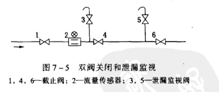 有時(shí)候,在現(xiàn)場(chǎng)確認(rèn)管系無流動(dòng)還比較困難。此時(shí)可按圖7-5所示.在流量傳感器2前后的截止閥l、4問設(shè)置一小口徑泄漏監(jiān)視閥3.觀察是否有泄漏量。