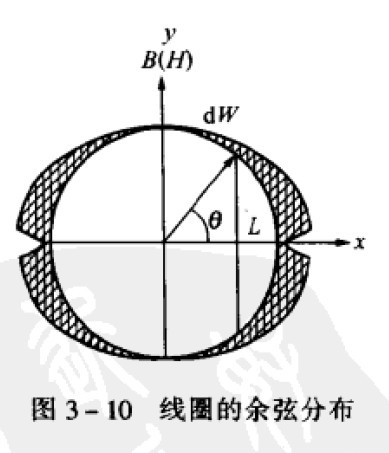 因?yàn)橛脙蓚€(gè)平面的磁極,保證測(cè)量管處于等長(zhǎng)的空氣隙長(zhǎng)度,得到相同的磁感應(yīng)強(qiáng)度。所以,變壓器鐵芯結(jié)構(gòu)和磁軛式集中繞組結(jié)構(gòu)的磁場(chǎng)分布均勻。磁軛式分段繞組的空氣隙長(zhǎng)度,如圖3-10所示.L的長(zhǎng)是圓內(nèi)平行于y軸直徑的無(wú)數(shù)條弦長(zhǎng),這些弦長(zhǎng)是不相等的。也就是說(shuō).磁軛式分段繞組的空氣隙長(zhǎng)度是不相等的。安培環(huán)路定律告訴我們,測(cè)量管內(nèi)磁場(chǎng)大小和通電線(xiàn)圈電流與匝數(shù)的乘積成正比,與空氣隙長(zhǎng)度成反比。串聯(lián)線(xiàn)圈的電流是相等的。當(dāng)線(xiàn)圈的匝數(shù)按余弦規(guī)律分布時(shí),靠近電極處空氣隙長(zhǎng)度最短,影響該處磁場(chǎng)強(qiáng)度是其周?chē)€(xiàn)圈產(chǎn)生的磁力線(xiàn);離開(kāi)電極,盡管靠近測(cè)量管中心(y軸)處的空氣隙長(zhǎng)度最長(zhǎng),但該處的磁場(chǎng)強(qiáng)度會(huì)受整個(gè)線(xiàn)圈磁力線(xiàn)的影響。從效果看.空氣隙長(zhǎng)度長(zhǎng)的地方,線(xiàn)圈的匝數(shù)多;空氣隙長(zhǎng)度短的地方,線(xiàn)圈匝數(shù)少,總是維持不同地方的磁通密度相同,使得處于測(cè)量管內(nèi)的磁場(chǎng)強(qiáng)度呈均勻分布狀態(tài)。