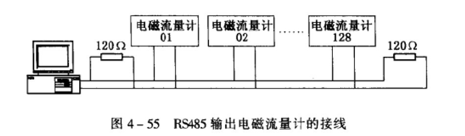 在RS485組成的網(wǎng)絡(luò)中(如圖4- 55所示),傳輸介質(zhì)是一條總線,電磁流量計(jì)通過相應(yīng)硬件接口接至總線上。采用土從式多機(jī)通訊,但只能主機(jī)和每個(gè)從機(jī)之間互相通訊.從機(jī)之間是不能互相通訊的。