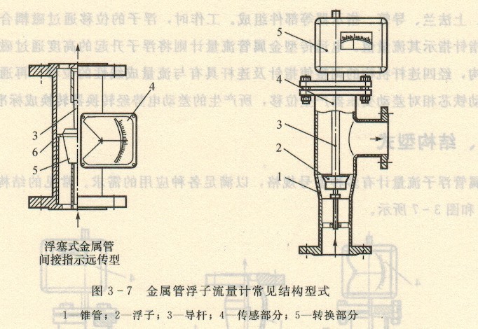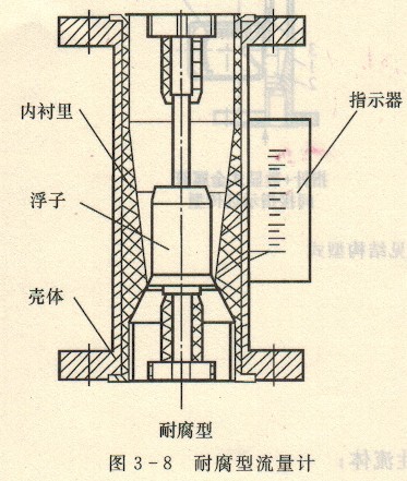 可測量高溫、高壓流體是金屬浮子流量計具有的主要優(yōu)點,它能測量溫度高達400℃和壓力最高為70MPa的液體和氣體流量。在這種場合下已不能用人眼來觀察浮子的位置,而采用磁耦耐腐型感應(yīng)的顯示系統(tǒng)指示流量。流量計本身材料往往采用優(yōu)質(zhì)不銹鋼,有些襯以工程塑料,可測量腐蝕性流體,示器典型結(jié)構(gòu)見圖3-8所示。