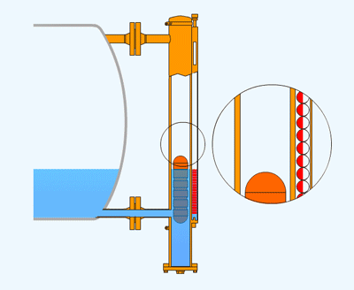 2).翻柱翻轉(zhuǎn)后隨著液位的上升翻柱又翻回白色-應(yīng)增大翻柱雙色指示器與主體管的距離