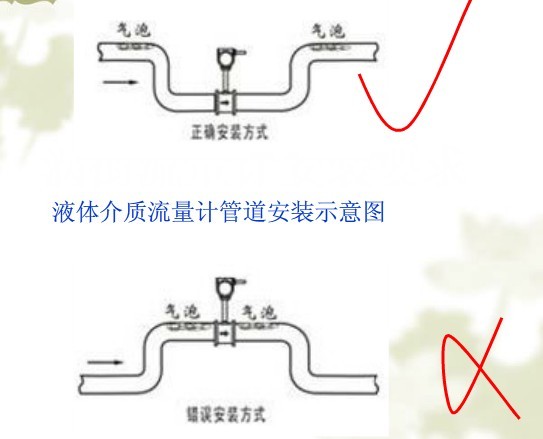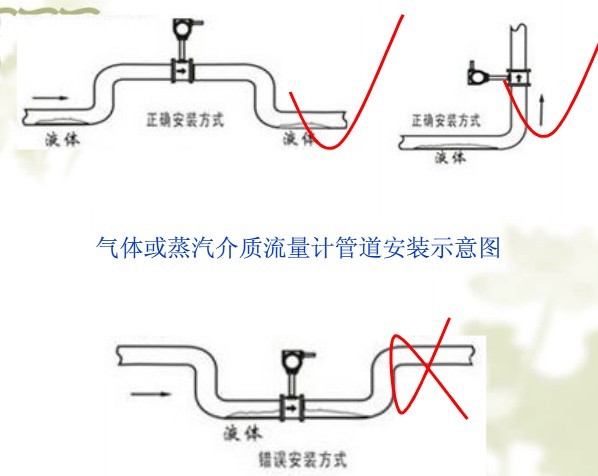 渦街流量計正確和錯誤安裝方式如下: