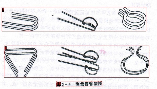科氏力式質(zhì)量流量計(jì)一般由傳感器和信號(hào)處理系成,而流量傳感器又是一種基于科里奧利力效應(yīng)的諧振式傳感器。這種傳感器的敏感元件——振動(dòng)管,是處于諧振狀態(tài)的空心金屬管,又稱測(cè)量管??剖狭κ劫|(zhì)量流量傳感器的測(cè)量管有各種不同的結(jié)構(gòu)形式,按照傳感器測(cè)量管的數(shù)量可將其分為單管型、雙管型和連續(xù)管型三種結(jié)構(gòu)。單管型結(jié)構(gòu)簡(jiǎn)單,不存在分流問(wèn)題,管路清洗方便。一般地說(shuō),它對(duì)外來(lái)振動(dòng)比較敏感。雙管型結(jié)構(gòu)容易實(shí)現(xiàn)相位差的測(cè)量,可以較好地克服外來(lái)振動(dòng)的影響,并對(duì)提高振動(dòng)系統(tǒng)的Q值有利。目前大多數(shù)產(chǎn)品均采用這種結(jié)構(gòu)。但這種結(jié)構(gòu)同時(shí)帶來(lái)的問(wèn)題是兩測(cè)量管中流過(guò)的流量不可能做到絕對(duì)相等,其中的沉積物和磨蝕也不可能絕對(duì)一致,從而引起附加誤差。而且在兩相流工作狀態(tài)下,難以作到兩測(cè)量管中流體分布的均勻一致,以致影響振動(dòng)系統(tǒng)的穩(wěn)定性。隨著單管型結(jié)構(gòu)中測(cè)量管系統(tǒng)的振動(dòng)不平衡問(wèn)題的解決,單管型結(jié)構(gòu)仍具有一定的發(fā)展前景。連續(xù)管型是一種特殊形式的單管.它以環(huán)繞兩圈的單管結(jié)構(gòu)試圖集單、雙管型的優(yōu)點(diǎn)于-身。根據(jù)測(cè)量管的形狀,又可分為直管型和彎管型兩大類。直管型一般外形尺寸小且不易于積存氣體,但由于其振動(dòng)系統(tǒng)剛度大,諧振頻率高,相位差為微秒級(jí),電信號(hào)的處理就比較困難。為了不使諧振頻率過(guò)高,管壁必須較薄,以致其耐磨及抗腐蝕性能較差。彎管型的振動(dòng)系統(tǒng)剛度較低,諧振頻率也較低,相位差為毫秒級(jí),電信號(hào)較易處理,同時(shí)可選用較厚的管壁,因此,其耐磨及抗腐蝕性能較好。但彎管型由于管形復(fù)雜,容易積存殘?jiān)皻怏w,引起附加誤差,其結(jié)構(gòu)尺寸也比較大。目前,大多數(shù)科氏力式質(zhì)量流量計(jì)均采用彎管型結(jié)構(gòu)。圖2-5列舉了科氏力式質(zhì)量流量傳感器測(cè)量管的部分管圖型。