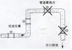 為了你正確的測量,在選擇管道上位置時應(yīng)注意以下幾點要求:⑴傳感器既可在直管道上安裝,也可以在水平或傾斜管道上安裝,但要求二電極的中心連線處于水平狀態(tài)。 ⑵介質(zhì)在安裝位置應(yīng)該滿管流動,避免比滿管及氣體附著在電極上。⑶對于液固兩相流體,最好采用垂直安裝,使被傳感器襯里磨損均勻,延長使用壽命。 ⑷流量計安裝位置介質(zhì)不滿管時,可采取抬高流量半后端管路的方法,使其滿管,嚴(yán)禁在管道最高點和出水口安裝流量計。(見圖)⑸修改管道的安裝方法: 當(dāng)介質(zhì)流速達不到要求時,應(yīng)當(dāng)選用較小口徑的流量計,這時應(yīng)使用異徑錐管或修改部分管道,使其與傳感器同口徑,但前后直管段至少須滿足:前直管段≥5DN,后直管道≥2DN(DN為管徑) ⑹前后直管段為流量計前≥5DN,后端≥2DN