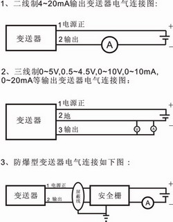 四、防腐性投入式液位變送器電氣接線: