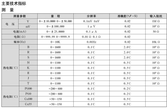 有V,mV,mA,Ω和熱電偶(TC),熱電阻(RTD)信號的輸出與測量.24VDC配電輸出為變送器提供回路電源,并可同時測量變送器所輸出的mA值.