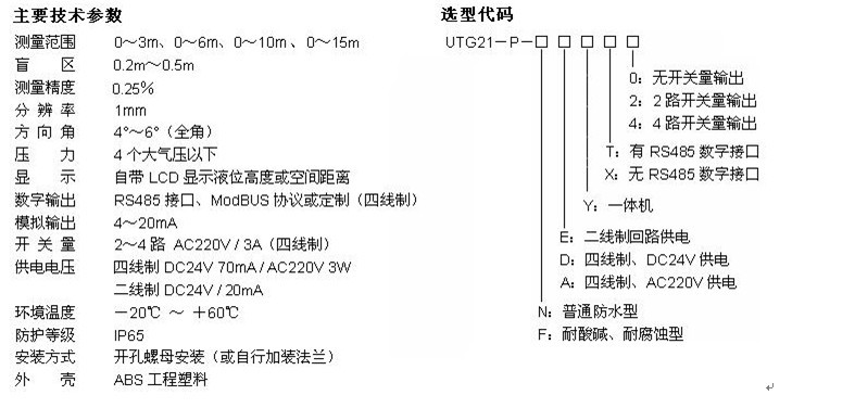 HL系列超聲波液位計產(chǎn)品介紹: HL系列超聲波液位計內(nèi)置溫度補(bǔ)償,功率自適應(yīng),采用多項自研的專利技術(shù),擁有全新的信號處理技術(shù),極大的提高了儀表的測量精度,對干擾回波有明顯得抑制功能。 HL系列超聲波液位計安裝、維護(hù)、標(biāo)定簡單。產(chǎn)品廣泛適用于化工、水處理、水利、食品、糧食等行業(yè)的物位測量,具有安全、清潔、精度高、壽命長、穩(wěn)定可靠、安裝維護(hù)方便、讀數(shù)簡捷等特點。 HL系列超聲波液位計產(chǎn)品特點: ◇ 價格便宜,性價比高。 ◇ 采用SMD技術(shù),提高儀器可靠性。 ◇ 自動功率調(diào)整、增益控制、溫度補(bǔ)償。 ◇ 先進(jìn)的檢測技術(shù),豐富的軟件功能適應(yīng)各種復(fù)雜環(huán)境。 ◇ 采用新型的波形計算技術(shù),提高儀表的測量精度。 ◇ 具有干擾回波的抑止功能保證測量數(shù)據(jù)的真實。 ◇ 16位D/A轉(zhuǎn)換,提高電流輸出的精度和分辯率。 ◇ 傳感器采用四氟乙烯材料,可用于各種腐蝕性場合。 ◇ 多種輸出形式:可編程繼電器輸出、高精度4-20mA電流輸出、Rs-485數(shù)字通信輸出